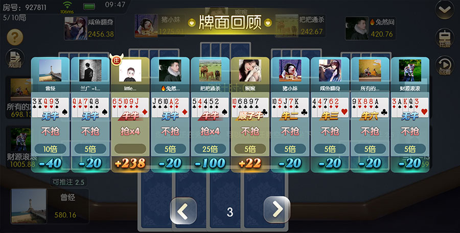 游戏中,玩家根据座位随机发五张牌,然后自己判断并选择加倍或者不加倍。之后,玩家可以选择明牌,这样其他玩家可以看到自己的牌型。所有玩家都操作完毕后,由拥有最大牌型的玩家获胜并根据倍率结算金币或其他虚拟货币。