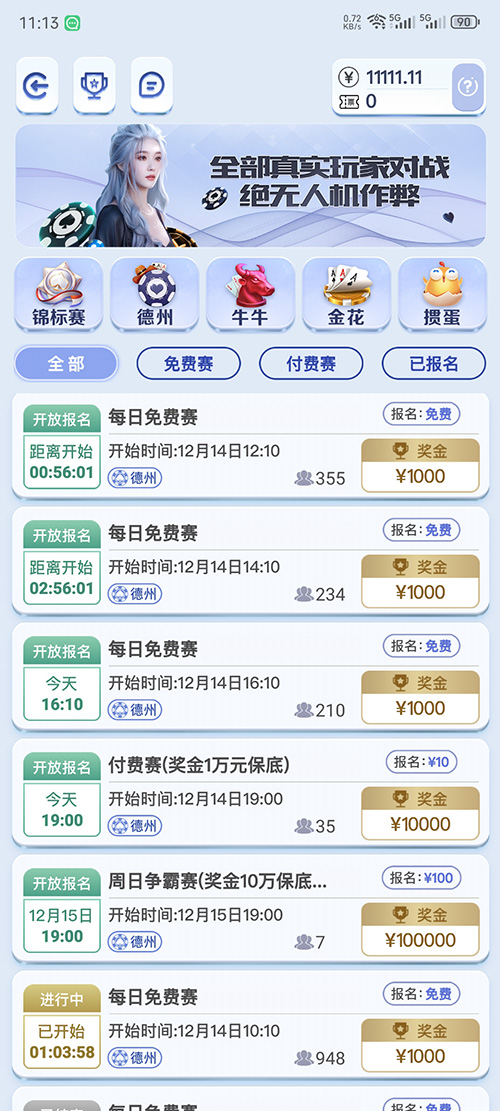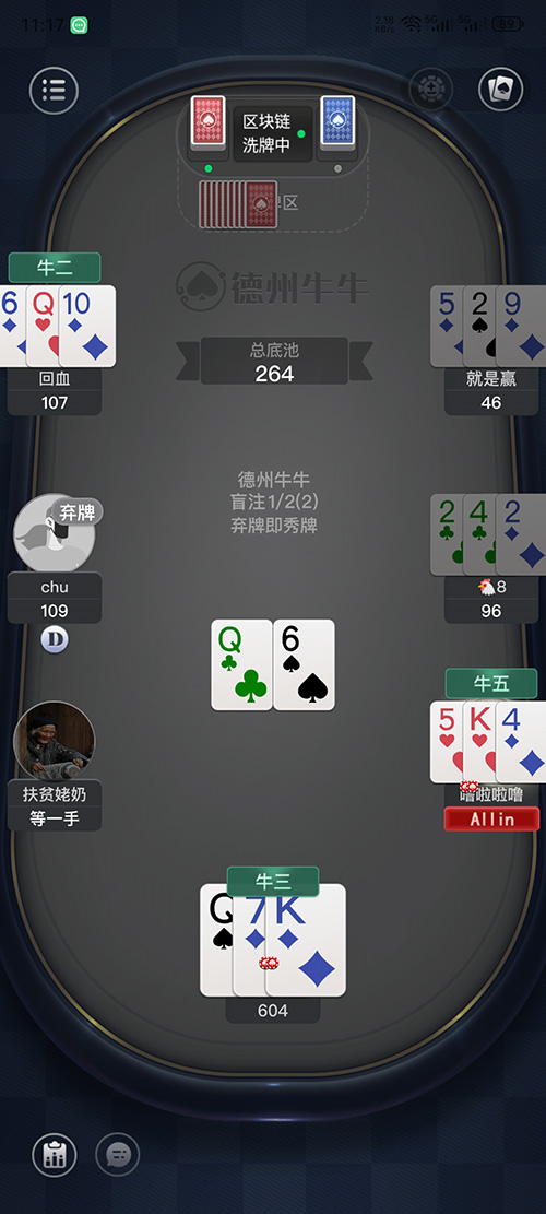 “明牌抢庄”模式中,玩家的手牌是公开透明的。这一模式极大地改变了传统德州扑克的博弈方式,因为玩家不再需要隐藏自己的手牌优势或者劣势,更多地是要凭借自己对局势的判断以及其他玩家的策略来抢到庄家的位置并应对之后的挑战。这种玩法需要玩家有更强的心理承受能力和快速决策能力。